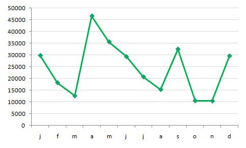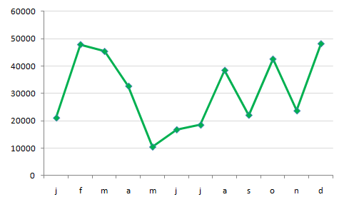 In deze grafiek zie je het aantal toeristen in een stad.