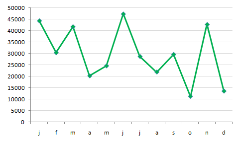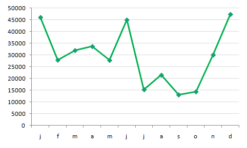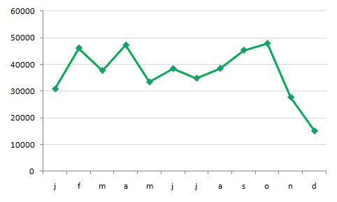 Wat is ongeveer het verschil tussen de rustigste en de drukste maand?