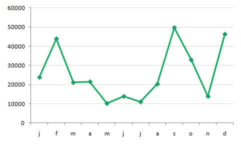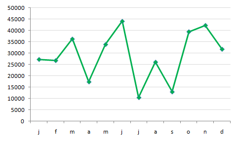 In deze grafiek zie je het aantal toeristen in een stad.