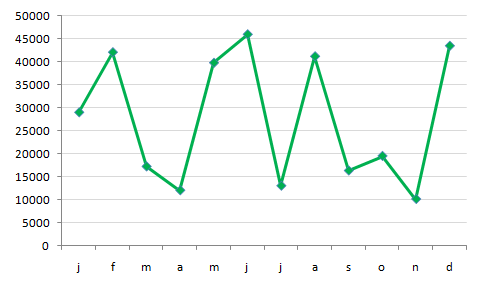 Wat is ongeveer het verschil tussen de rustigste en de drukste maand?